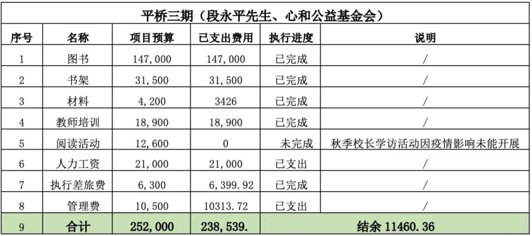 说明:秋季校长学访因疫情影响未能开展,且其他阅读活动开展由雪球用户的资助承担,故阅读活动余额为12,600元。