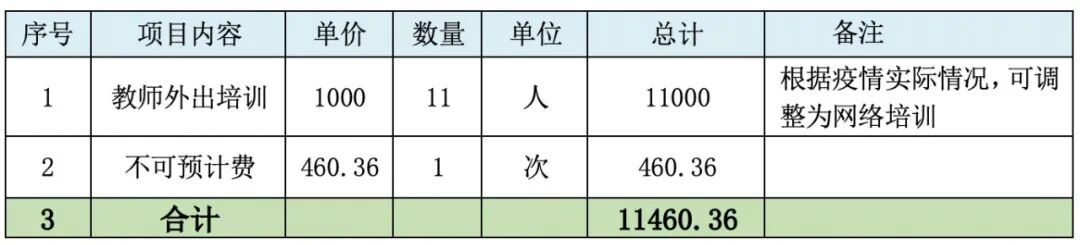 余款变更:由于疫情影响阅读活动中秋季校长学访未能开展,申请将校长学访活动变更为支持11名老师外出培训学习费用,按人均1000元计算,共计11,000元,在适当的时间完成。如遇疫情影响,则根据实际情况把外出培训学习调整为网络培训。
