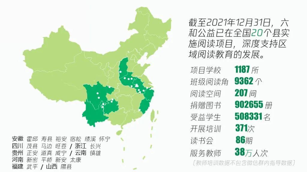 六和公益平桥三期阅读教育项目由段永平先生、心和公益基金会和雪球用户共同资助,覆盖平桥龙井乡、査山乡、肖店乡、胡店乡、平桥街道办及城区的60所学校,捐建班级阅读角267个,图书19490册,受益学生12041名。其中段永平先生、心和公益基金会的资助覆盖平桥査山乡、胡店乡、平桥街道办共计33所学校,捐建班级阅读角105个,配置图书7440册,受益学生4241 名;雪球用户的捐款资金覆盖平桥区龙井乡、肖店乡及城区共计27所学校,捐建班级阅读角162个,配置图书12050册,受益学生7800名。