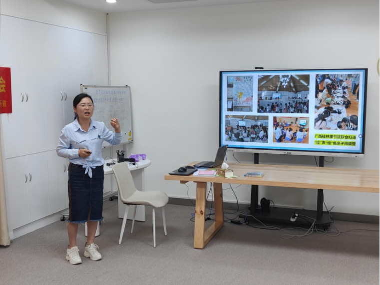 桂林市现代社会工作服务中心-郭瑞向大家分享了“书香童年公益联盟项目”。书香童年公益联盟是在中共桂林市秀峰区委宣传部的指导下,由桂林青少年美育助学协会主办,联合社区、学校、培训机构等公共空间,引入了活力未来亲子园等项目,为0-10岁儿童及家庭提供阅读指导服务。截止到2024年4月底,书香童年公益联盟总共开展了各种形式的阅读活动130余场,服务超3000人次,其中特色的阅读活动有广西桂林图书馆联合打造“绘”声“绘”色亲子阅读营、“千人共阅读 书香满桂林”阅读推广活动。