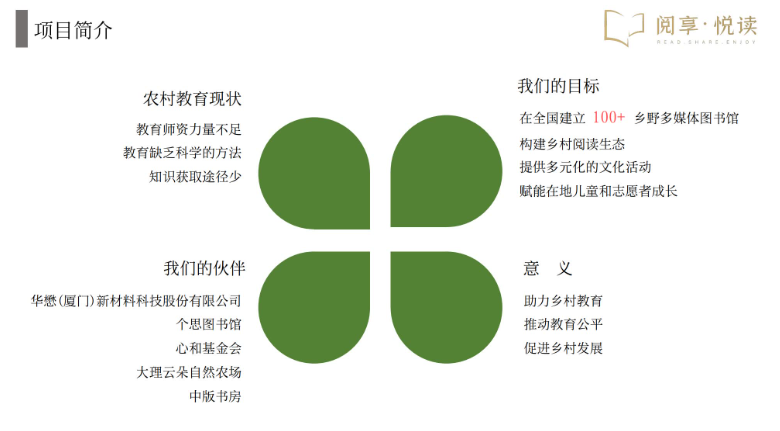 担当者行动扎根县域乡村基础教育一线,构建起可持续的【基础服务+进阶服务+生态构建】服务体系,联合当地政府主管部门、教育局、校长、成长起来的种子校长/种子老师的共同力量,为项目服务学校提供长期、系统的高品质阅读教育办学服务,支持学校打造高品质的书香校园儿童阅读环境,共同致力于让每一个乡村孩子都能享有高品质阅读。