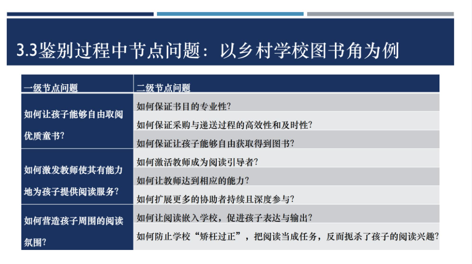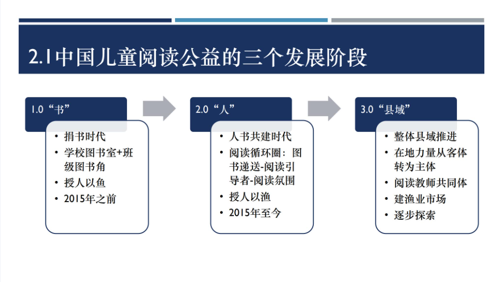 这也是本次推介会的愿景,希望公益机构之间,县域组织之间,和更多的志同道合的人,合作同行。成为发现者、唤醒者、联结者、支持者。爱阅公益书目项目主管袁泉也在致辞中传递了类似看法,“在这个信息爆炸、知识鸿沟越来越大的社会,让孩子回归书本、读好书进行深度思考这件事非常难,不亚于曾经在马背上推广读书的难度,我们做阅读推广这件事任重道远。需要更多的13年,与同行互相联结、支持,一起携手去做。”作为公益行业的资深研究者,中国矿业大学(北京)文法学院副教授、北京七悦社会公益服务中心主任卢玮静围绕儿童阅读公益发展的背景和价值,当前儿童阅读公益的特征与前沿点以及如何深度洞察出一个好的儿童阅读公益项目三个层面,深入浅出地分享了她在儿童阅读领域的研究成果,让我们更深刻了解儿童阅读行业现状和整体特征,引导我们在日常行动中去反思。卢教授认为,儿童阅读公益项目经过了三个发展阶段,从最初的捐书时代,侧重于把优质的童书送到孩子手上;到人书共建时代,把人激活起来,让更多的人进入到阅读中,进入阅读循环圈;现在逐渐演变为整体县域推进,将在地力量从客体转为主体,不仅是培育老师,还同校长、当地教育局合作,逐渐抛去对项目的制式化要求,对在地的模式和体系进行多元探索。