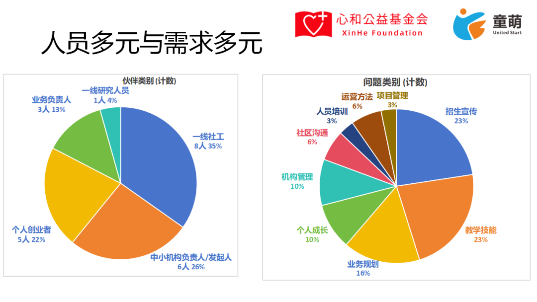 新增典型用户群体:针对当下行业存量还不多的现状,项目除了考察申请者过往实践情况外,还关注那些虽尚未启动,但具备潜力与能量的伙伴。我们发现,这类伙伴处于“有能力、想了解、还没做”的状态。支持这类伙伴有一定的杠杆效应,因此心萌2期也给予了这类伙伴一些轻量化的支持。