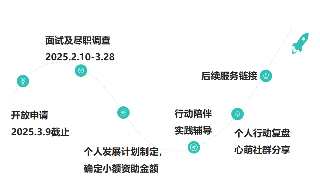 心萌计划3期将支持10-15位伙伴,感兴趣的申请者请于2025年3月10日前填写申请表(点击阅读原文)。我们将进行滚动筛选并安排线下沟通,招满即止,欢迎您尽快提交申请,抓住这个难得的机会!