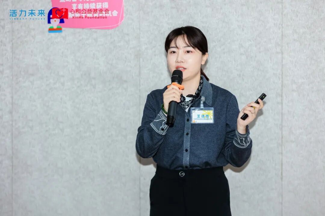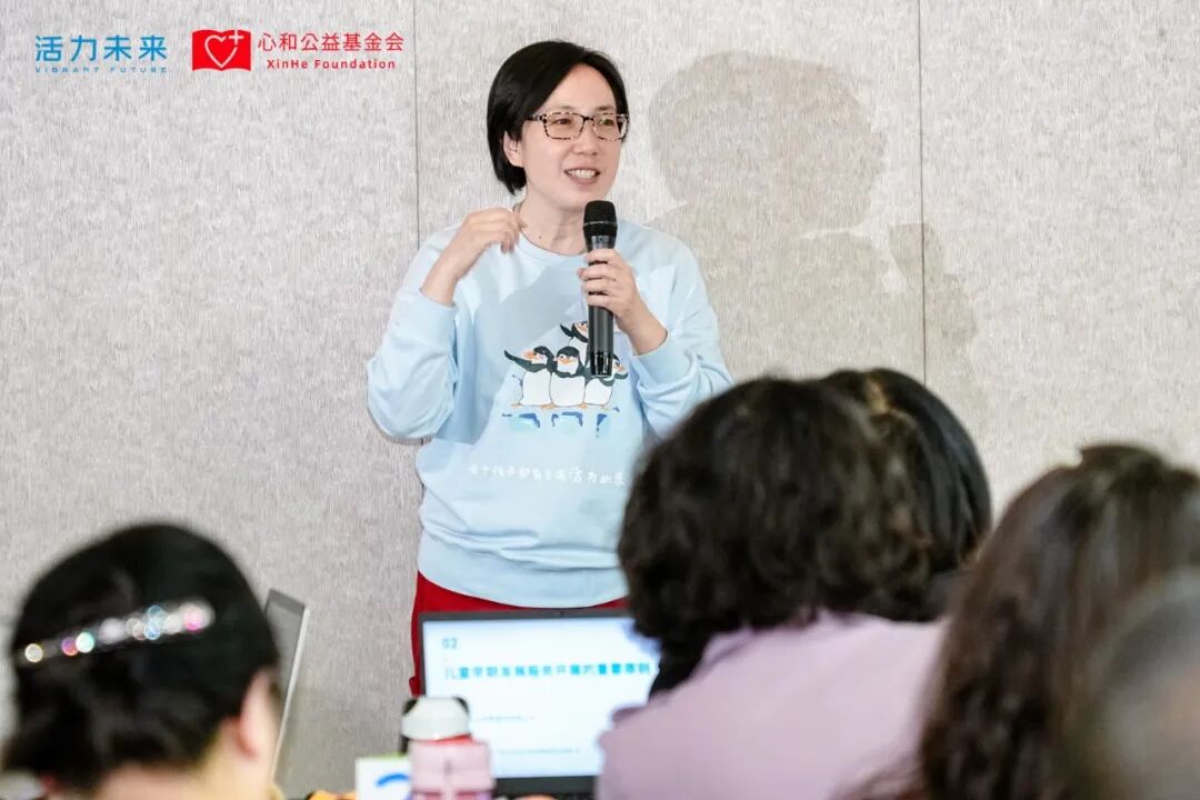 北京陈江和公益基金会评估与发展主管许冰寒女士重点介绍了「慧育希望」项目的发展历程、模式和成果。项目在各地建立儿童早期发展活动中心,招募当地女性为养育师、为照养人提供科学养育指导,旨在促成高质量的亲子陪伴并促进儿童全面发展。项目也与专家学者合作建立了儿童早期发展从业人员的人才培养体系。