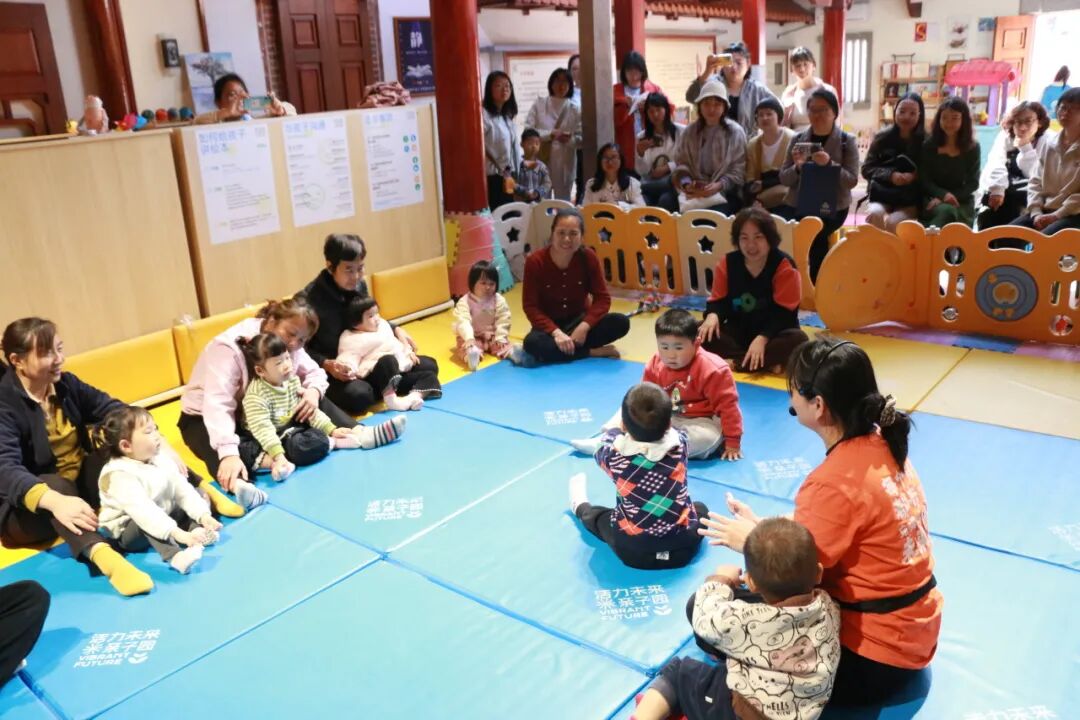 除了伙伴们走入教室、近距离观摩亲子课,并分享自己的观察和感受外,两家伙伴机构的负责人介绍了自己为何要开展亲子园项目,以及项目从零到一的成长故事。在交流环节,大家就“亲子课收费尝试”和“如何招募、培养和留存爱心妈妈”等话题展开了热烈的讨论。