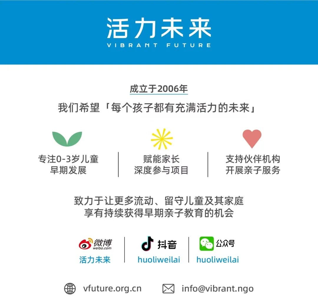 这番话恰好呼应了去年她在伙伴交流会上的总结分享:期待伙伴们和经历过发展瓶颈甚至生死存亡关头的活力未来团队一样相信,当我们专心致志地思考“如何让更多孩子和家长真实地受益”并用心把这件事做好,慢慢地,家长、社区、支持机构和基金会都会看到这件事的效果和价值,并带来转机。不论外部环境如何变化,我们总是可以选择放下负担,简简单单往前走。