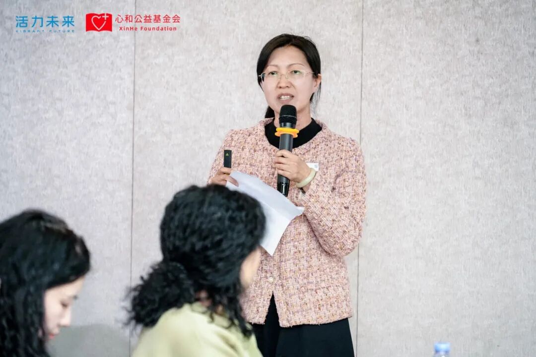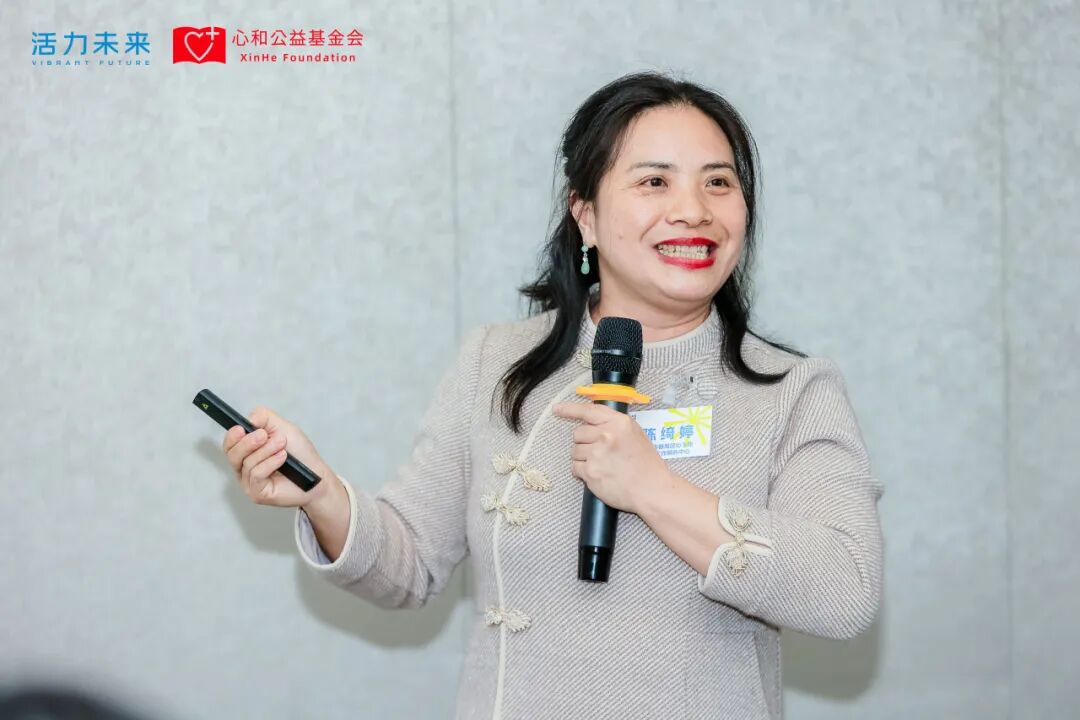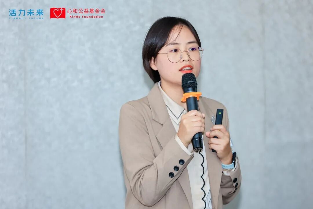 她介绍了基金会在人才赋能、方案创新和生态建设方面为在地公益组织提供的支持资源。在人才赋能方面,心和公益基金会为早期行动者、核心骨干和议题引领者分别提供了相应的支持,涵盖了学习金、奖学金、1对1诊断和咨询等,并提供了常态化的共学和行业交流机会。在机构创新层面,基金会为跨议题协作和创新方案提供了资源支持和咨询辅导。生态建设板块的工作重点在于通过议题知识生产和搭建交流平台来促进行业基础设施建设和政策倡导。