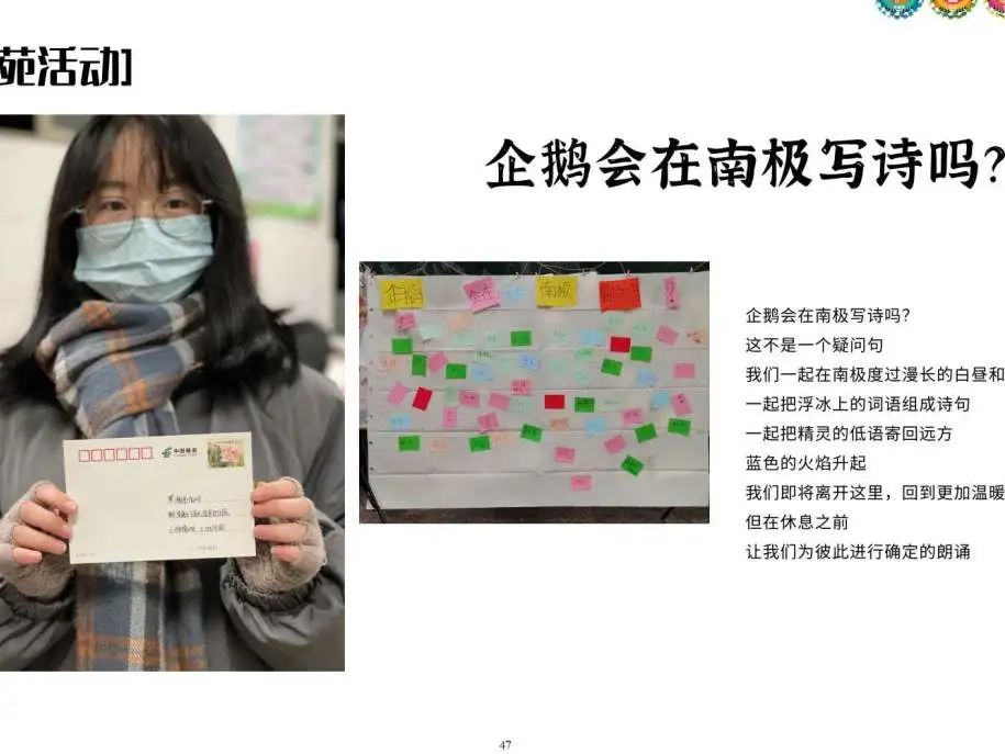 在分苑相处的五天里,大家共同完成了艺术与文学的创作,挚愿者与学生通过分苑动物寻找到最适合自己的精神气质。学生们无限的想象力赋予了分苑活动灵魂,由此更多学生寻找到自我并展现自我。
