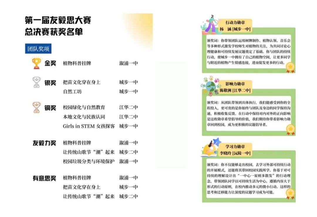 来自十四所县域中学的八十余名学生与挚愿者、工作团队、教师、社群伙伴和九位来自麦肯锡咨询公司的伙伴们相聚城步,通过分苑、孵化器、空间市集、城步寻宝、友毅思大赛等丰富多元的活动,开展学习、讨论与共创,培养团队协作意识,锻炼自主探索能力,共话县域中学教育未来的发展方向。
