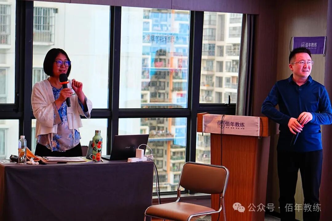 最后,珊珊教练还为大家讲解了四叶草教练六项能力和二十三项行为标识;大伟教练和助教海军进行了现场的一对一教练对话演示,助教汪纯、海燕和秀华则就大伟教练在对话中呈现的行为标识做了详细的反馈。