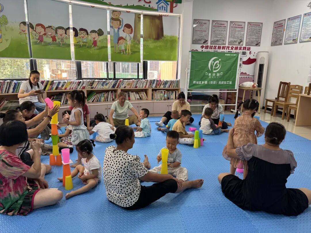 2024年3月报名加入项目的唐菲回忆到:“我是搞民政工作,虽然也有开展小组活动,社区活动,但0-3岁的孩子没服务过,第一次课就像打仗,上完课,我全身都冒汗”。她回忆在赵家山村的场景:两岁的孩子满地乱爬,爷爷奶奶们蹲在门口抽烟。童萌督导老师连夜打来视频:“试试用童谣开场!”那晚哄睡孩子后,她举着手机演练到凌晨两点。一年后的今天,她与区域的其他3位社工伙伴组成的早教小组已在鹤城6个社区建立了常态化的亲子早教服务点,合共开展超过150多节亲子早教课,服务超过200户03幼儿家庭。