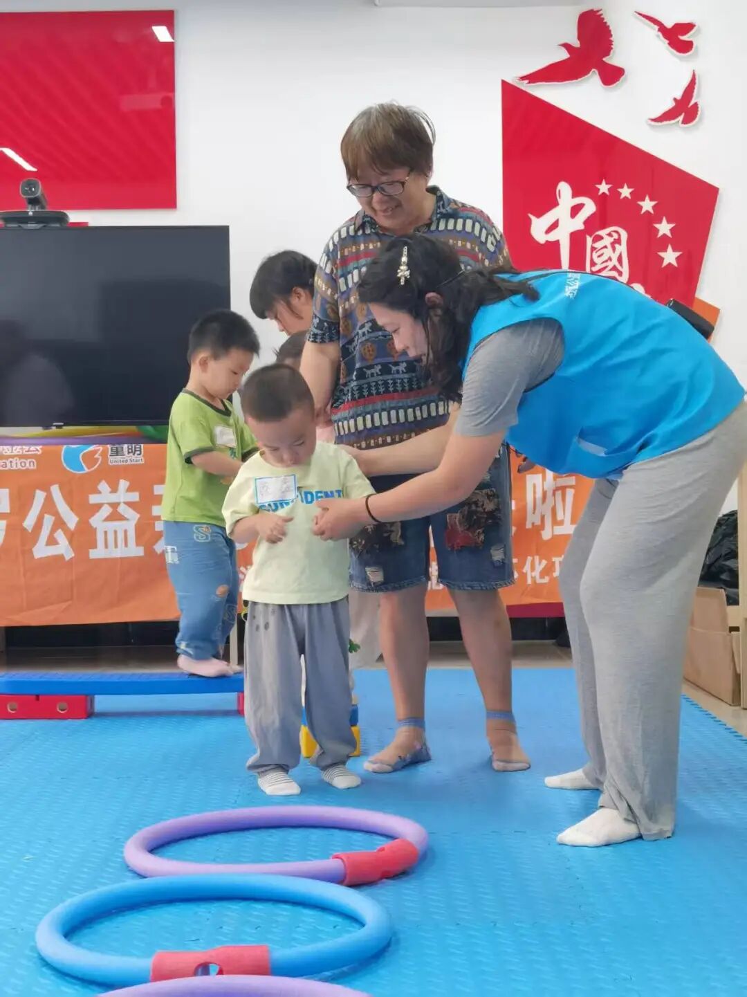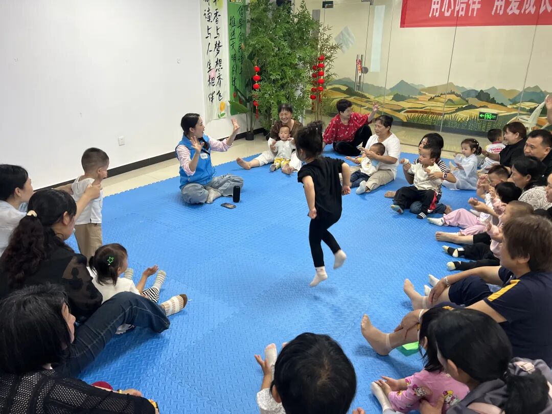 惊喜的改变在不同的服务点上反复上演,芷江县么家坪社区的早教课堂里,2岁的豪豪紧紧攥着妈妈的衣角不敢离开妈妈身边——这是他第一次面对满屋子的陌生人。这样的场景,曾是很多服务点第一次来上课的孩子状态。“去年第一次来早教课都哭了,他很少和这么多小朋友玩。” 豪豪妈妈回忆道。但变化在第三次课时悄然发生:当《小手咕噜咕噜》的音乐响起,豪豪突然松开妈妈的手,跟着节奏模仿起社工老师的动作动起来了。